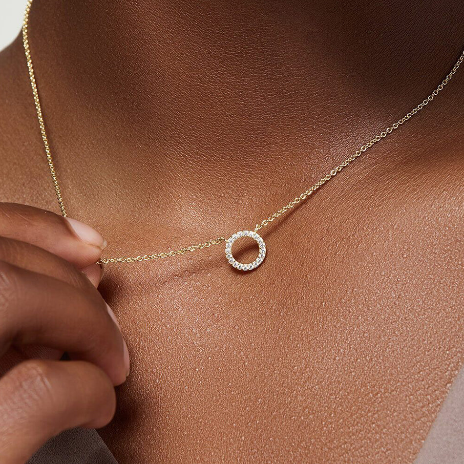 Round Circle CZ Pendant Necklace |