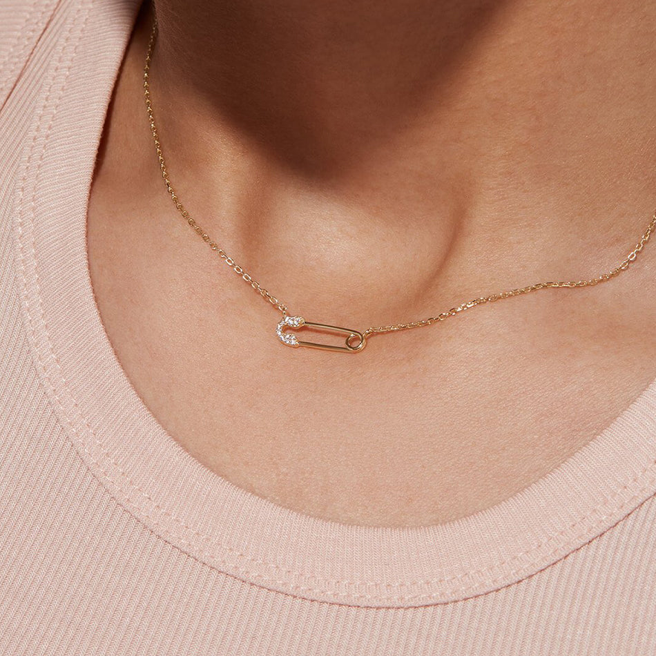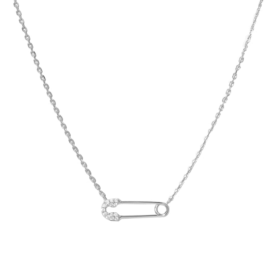 FX0701 925 Sterling Silver Cubic Zirconia Pin Necklace