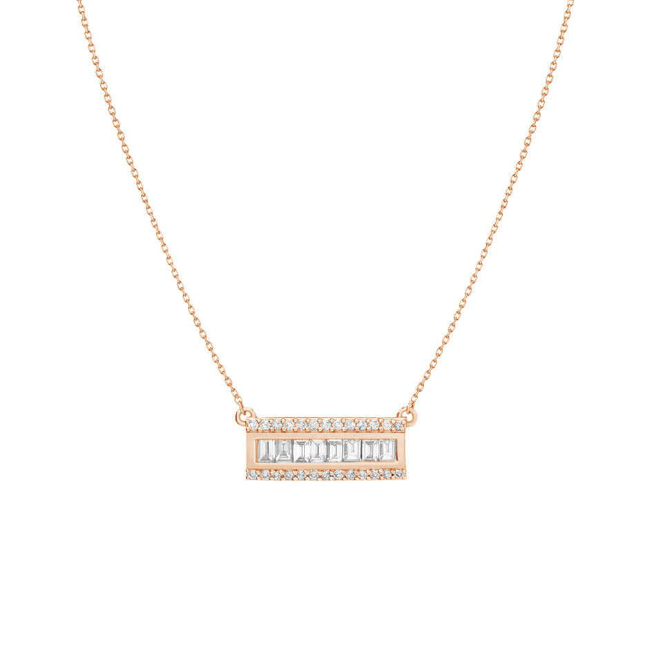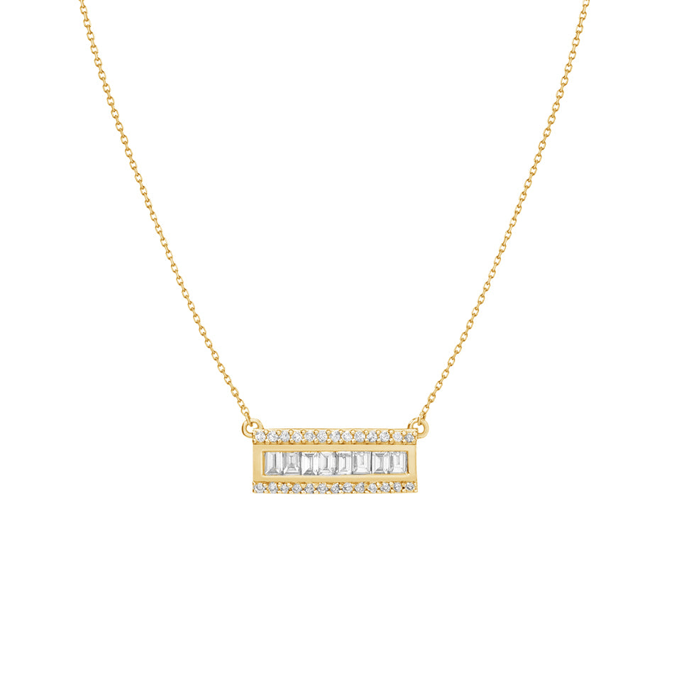 FX0820 925 Sterling Silver Baguette CZ Bar Necklace
