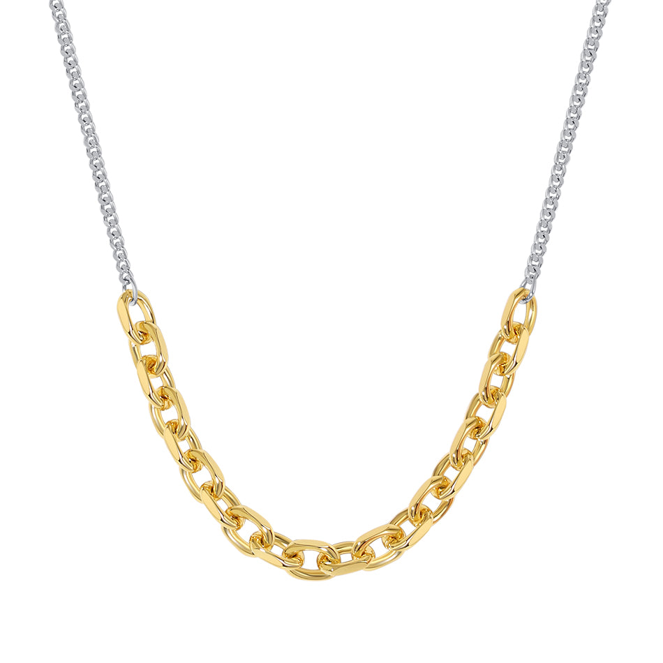 FX0883 925 Sterling Silver Mixed link Chunky Onal Chain Necklace