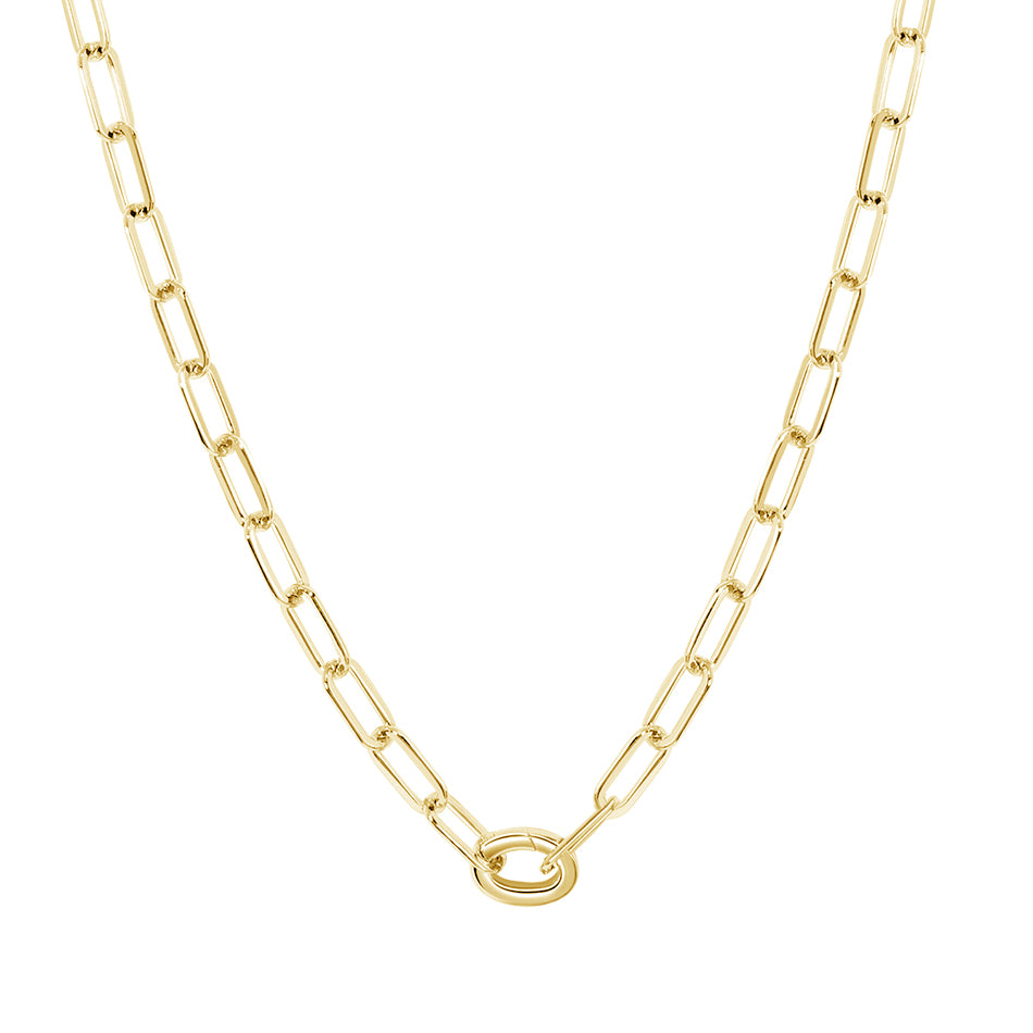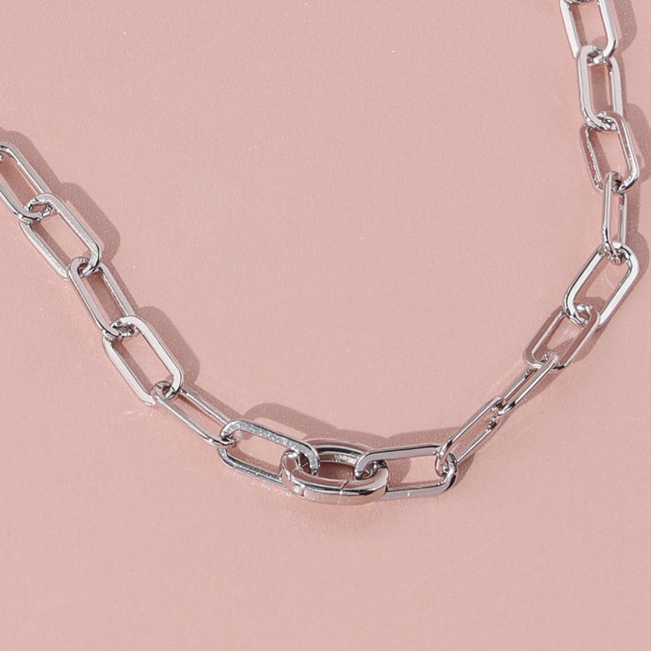 FX0903 925 Sterling Silver Paperclip Link Round Push Clasp Necklace