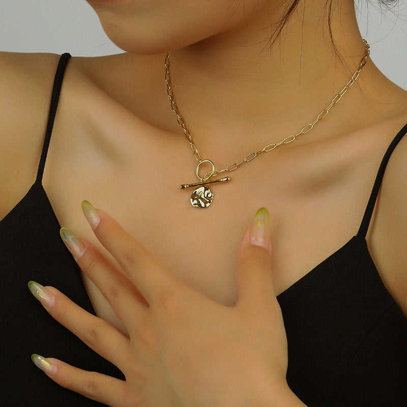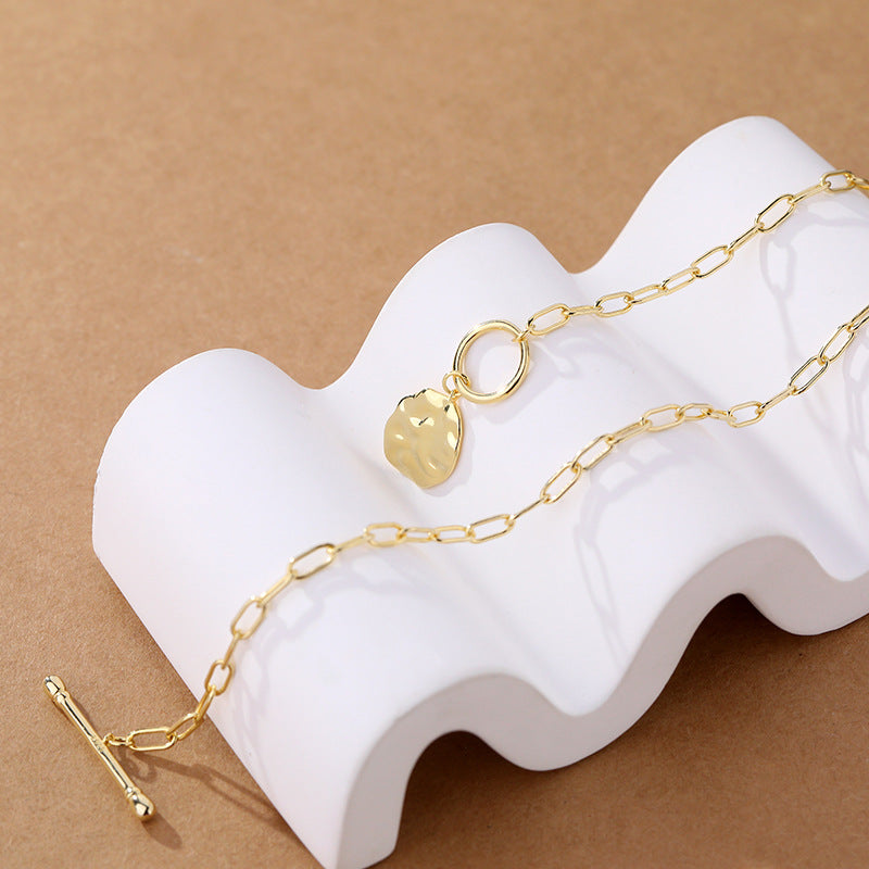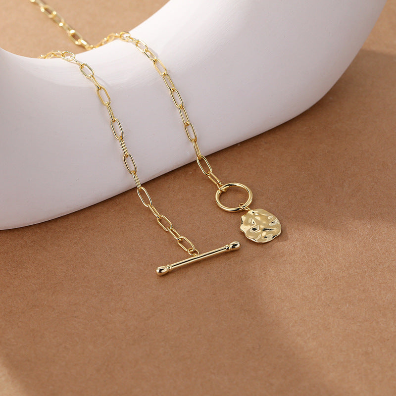 FX0968 925 Sterling Silver Hammered Coin Tohggle Pnedant Necklacs