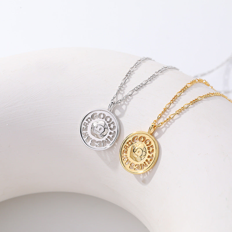 FX0974 925 Sterling Silver Cute Cartoon Smiling Face Sunflower Necklace