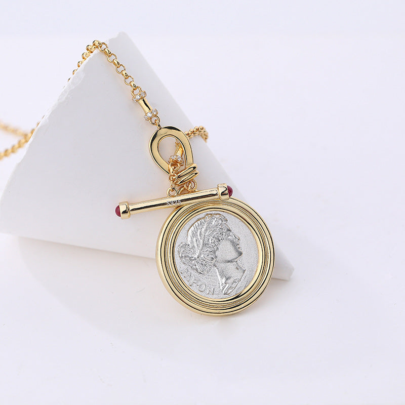 FX1079 925 Sterling Silver Portrait Coin Pendant Necklace