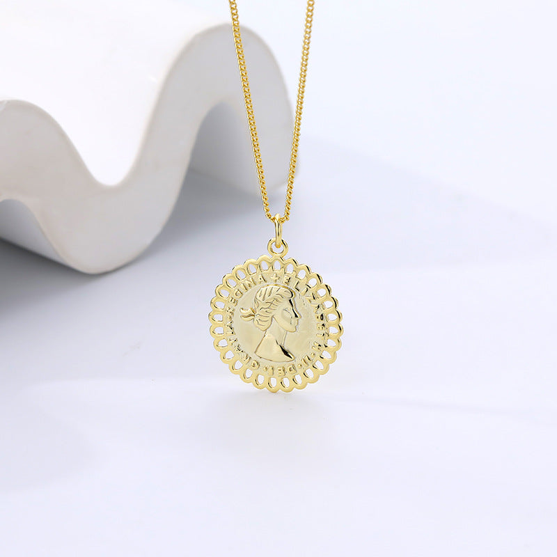 FX1104 925 Sterling Silver Elizabeth Coin Pendant Necklace