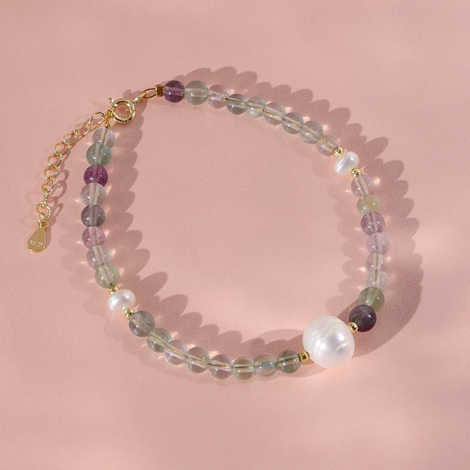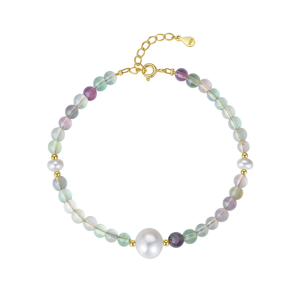 PB0009 925 Sterling Silver Fluorite Bead Stone Pearl Bracelet