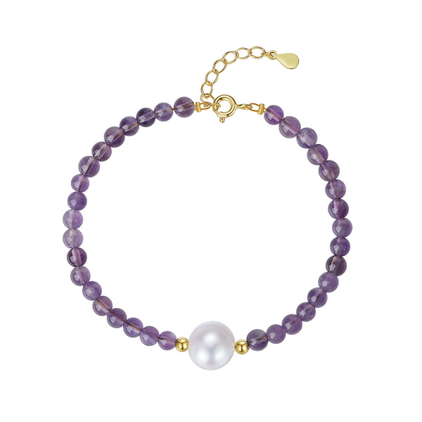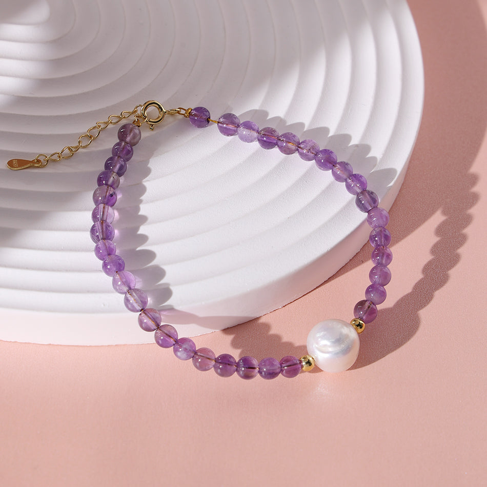 PB0024 925 Sterling Silver Pearl And Light Amethyst Bracelets