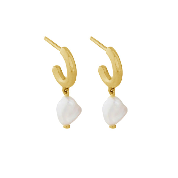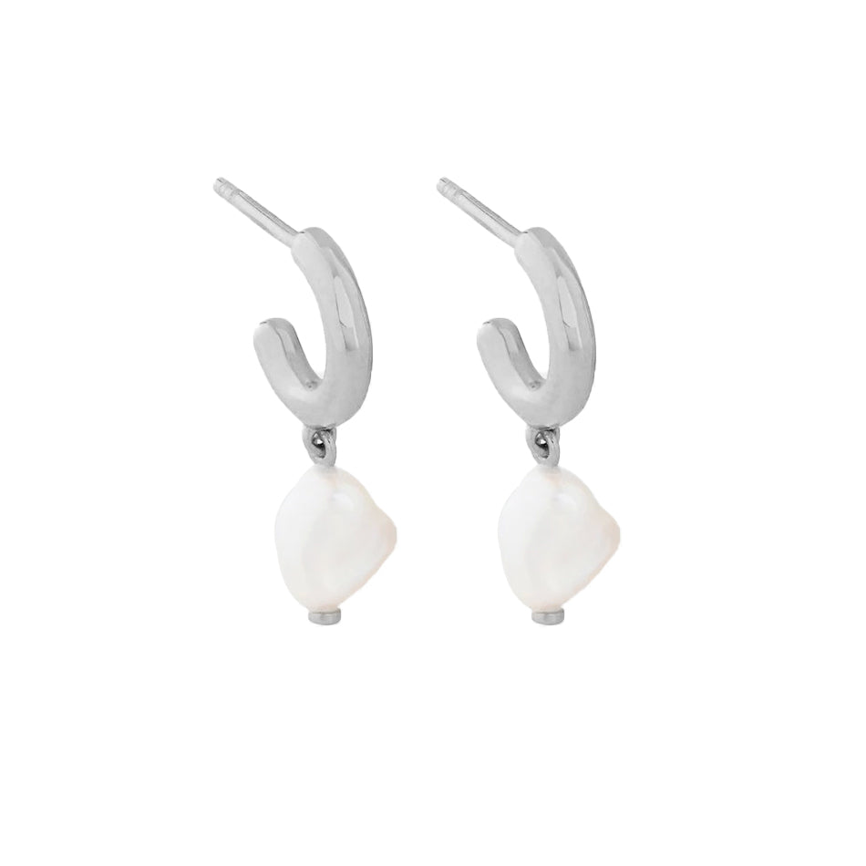 PE0012 925 Sterling Silver Baroque Pearl Drop Hoop Earrings
