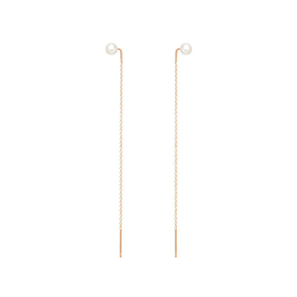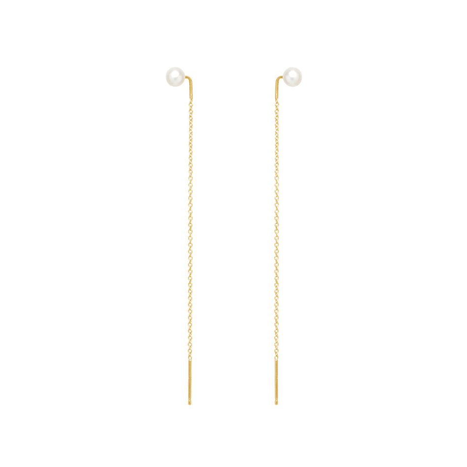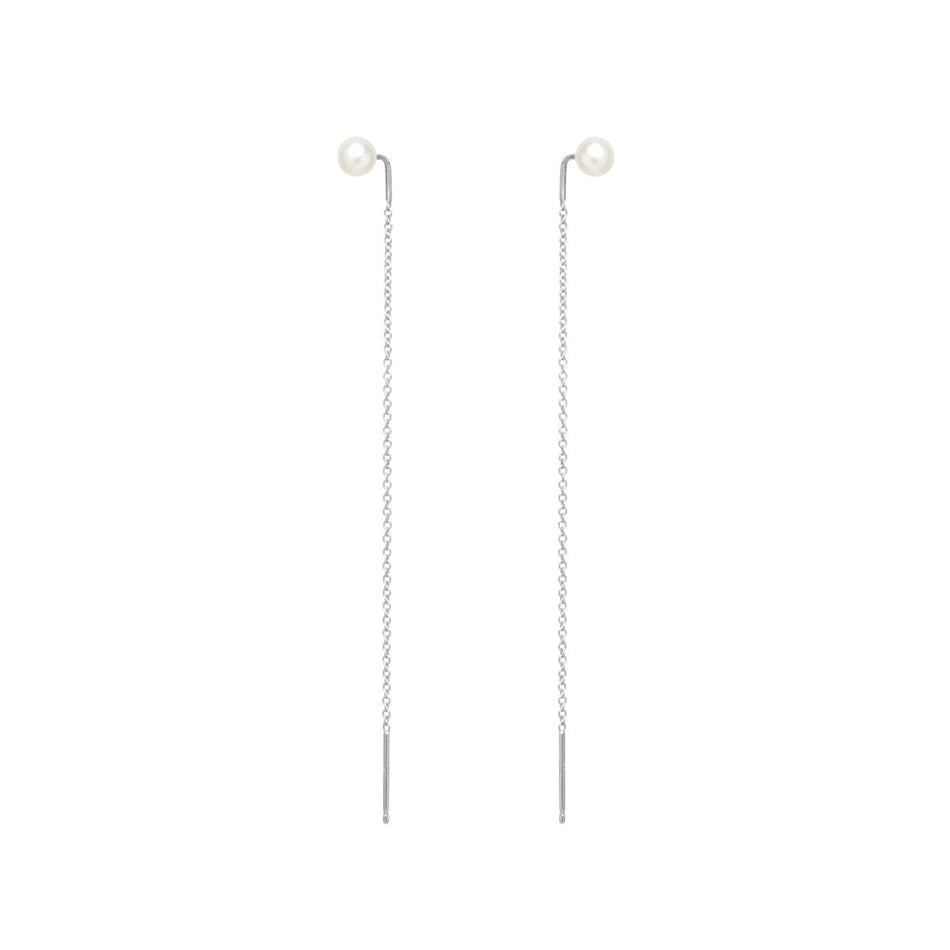 PE0019 925 Sterling Silver Pearl Stud Long Threaders
