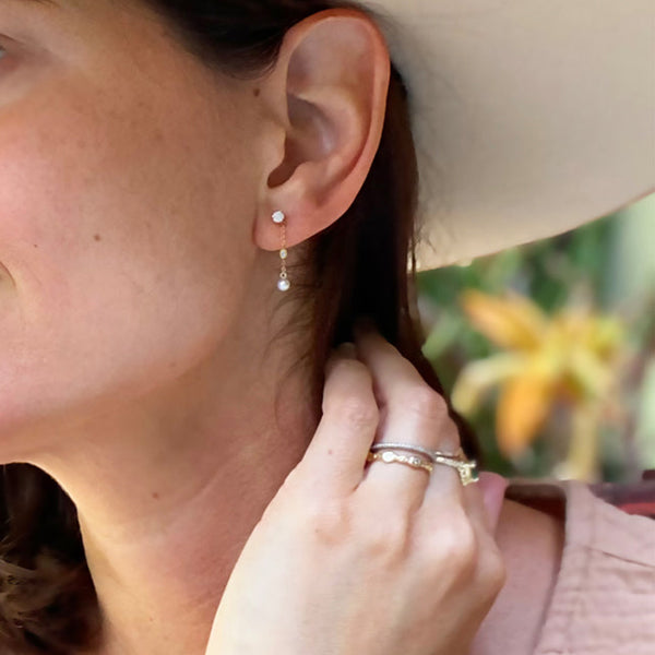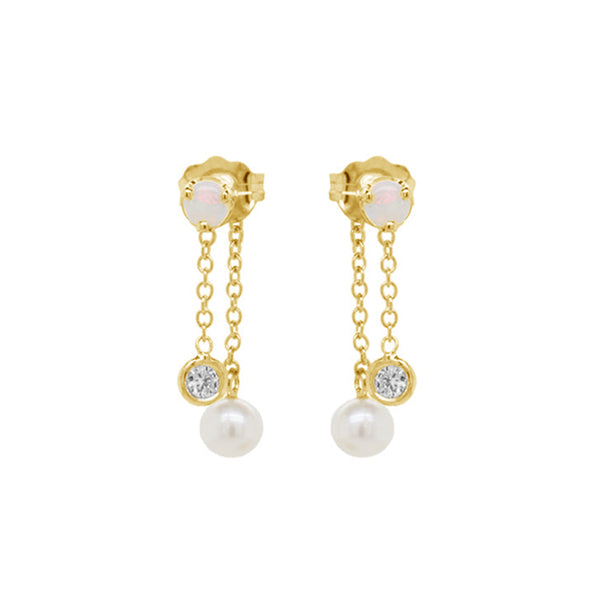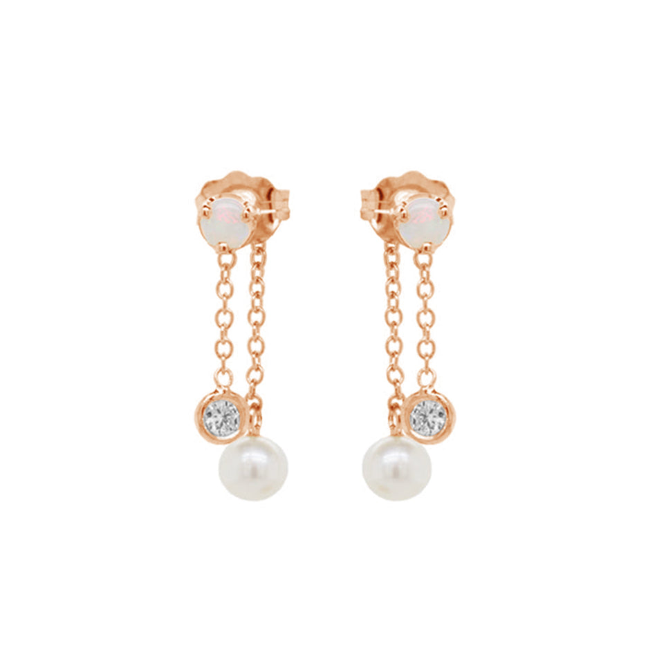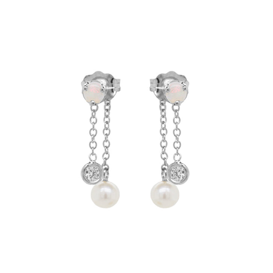 PE0021 925 Sterling Silver Opal & CZ & Pearl Chain Stud Earrings