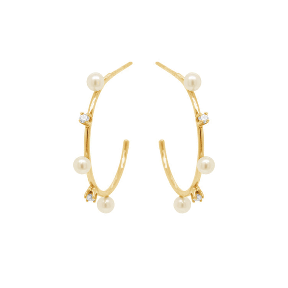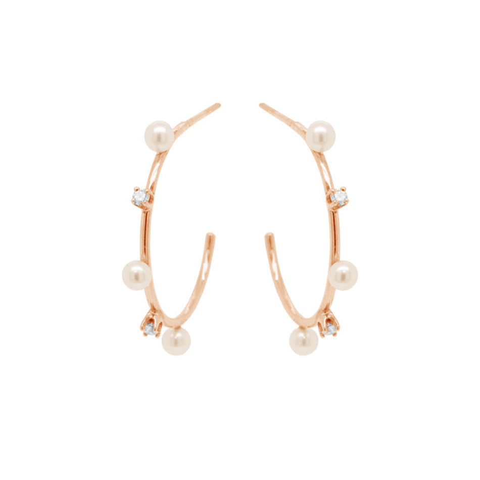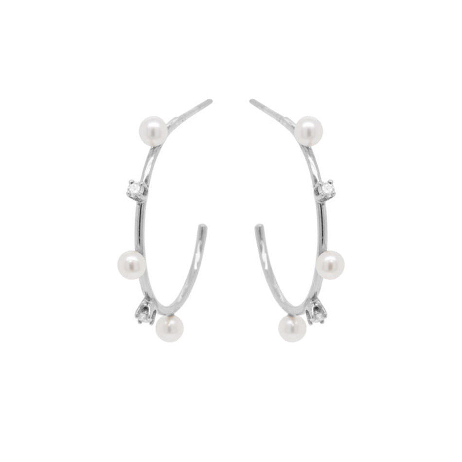 PE0025 925 Sterling Silver Prong Set Zirconia Tiny Pearl Hoops