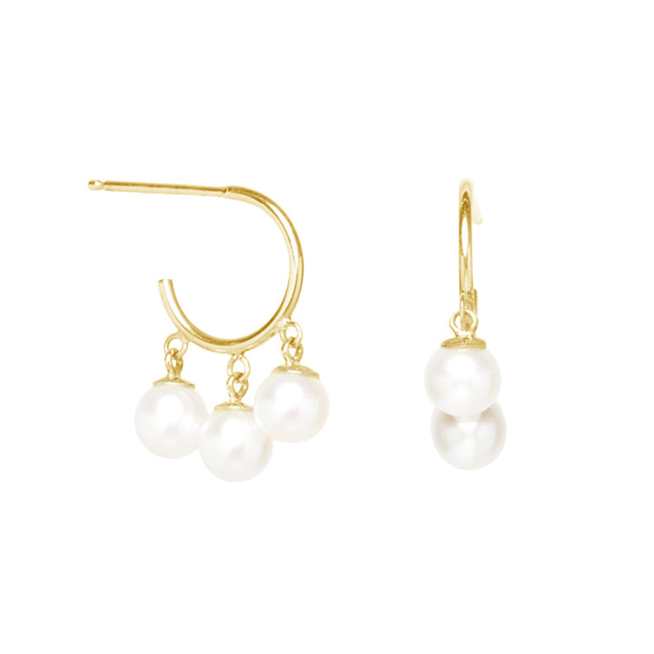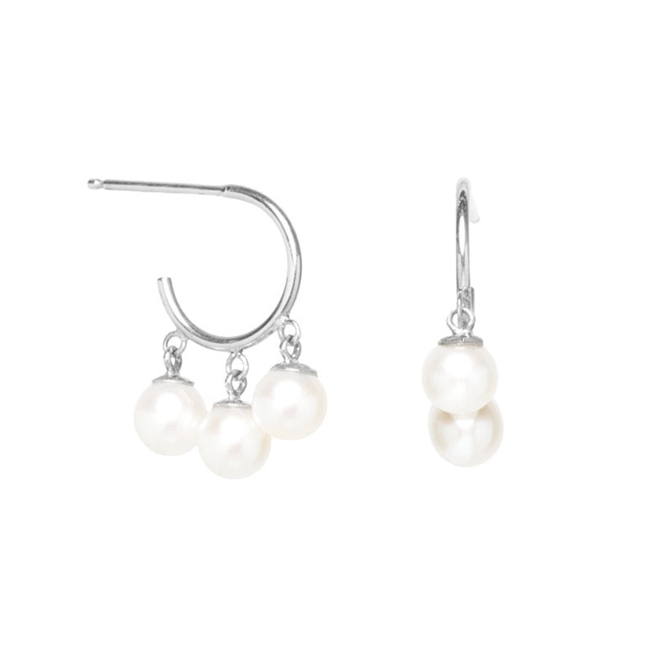 PE0026 925 Sterling Silver Dangling Pearls Huggie Hoops