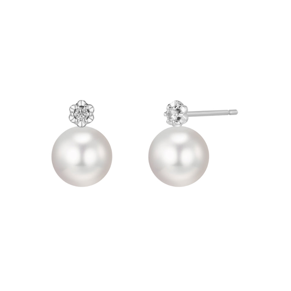 PE0038 925 Sterling Silver Single Shell Pearl CZ Stud Earring