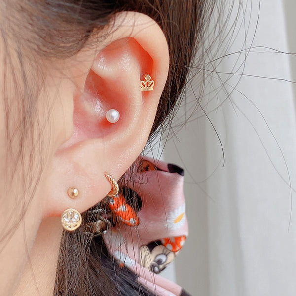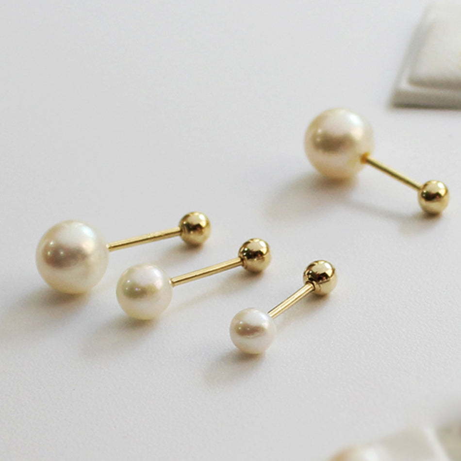 PE0048 925 Sterling Silver Simple Round Pearl Stud Earring For Women