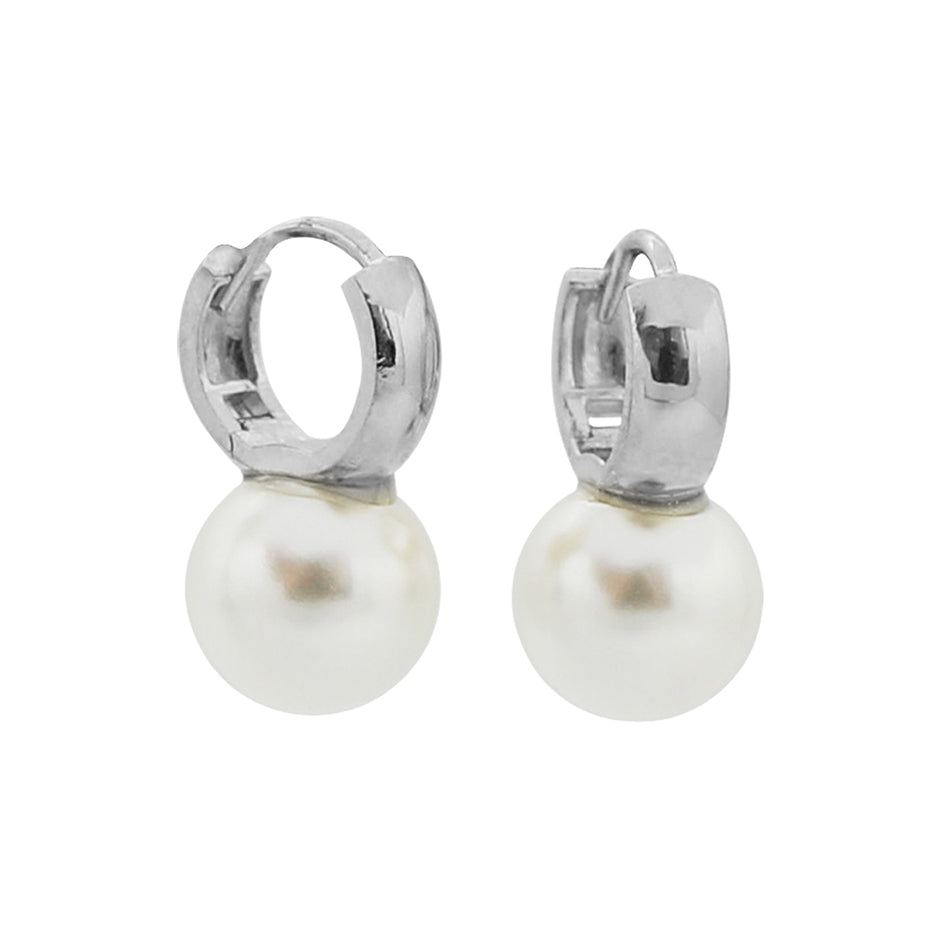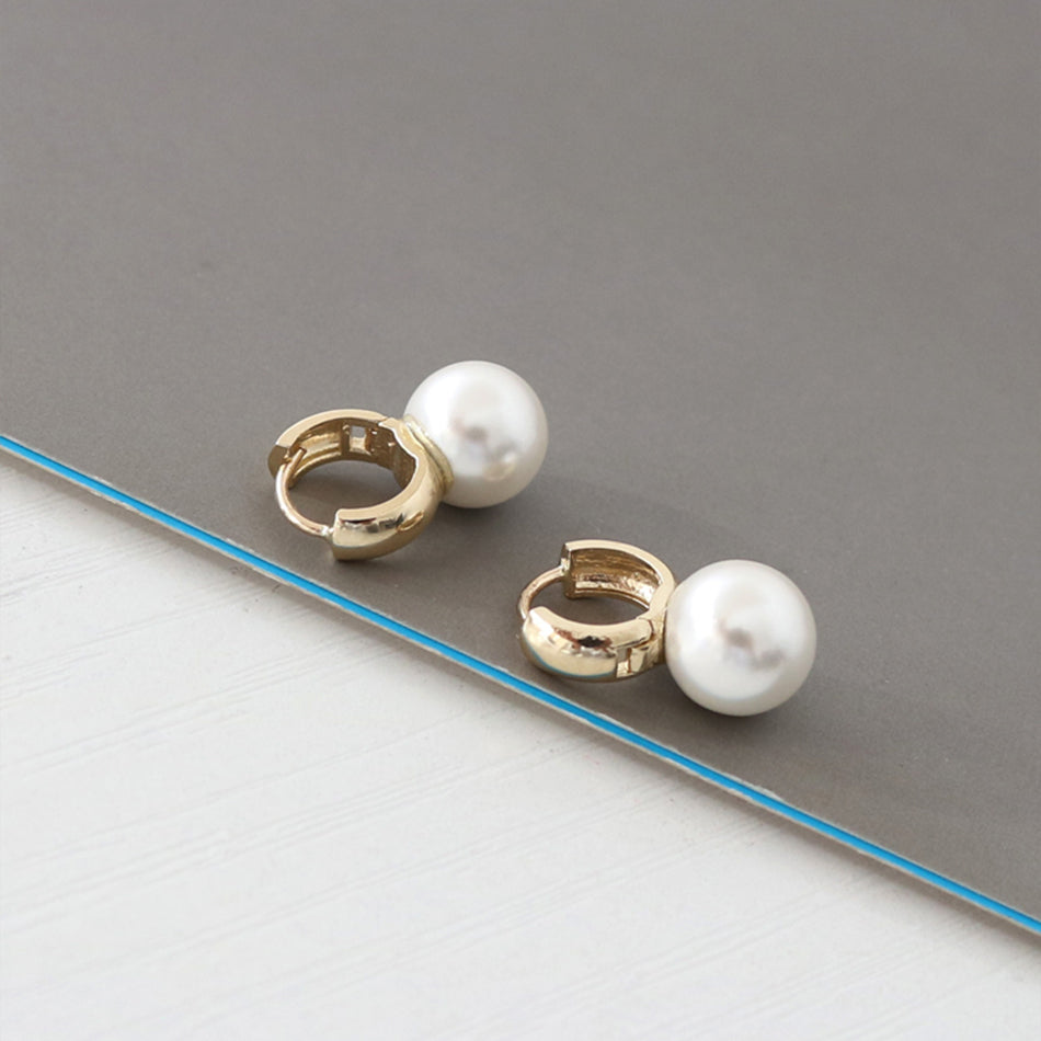 PE0064 925 Sterling Silver Big Shell Pearl Chunky Hoop Earring