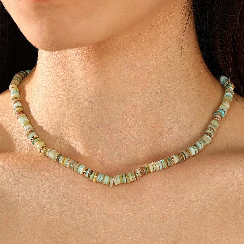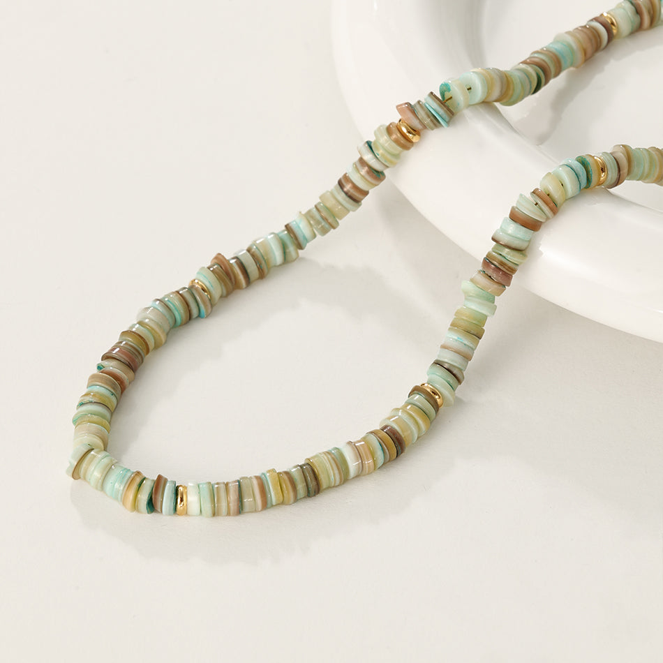 PN0100 925 Sterling Silver Green Wheel Beads Necklace