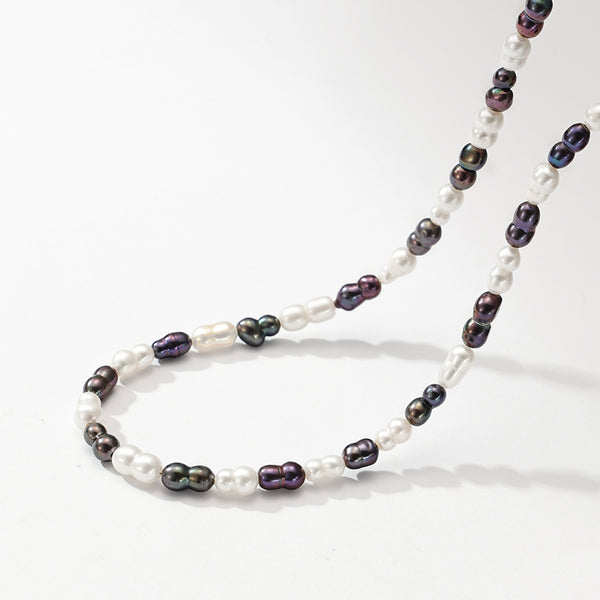 PN0177 925 Sterling Silver White Purple Freshwater Pearl Necklace