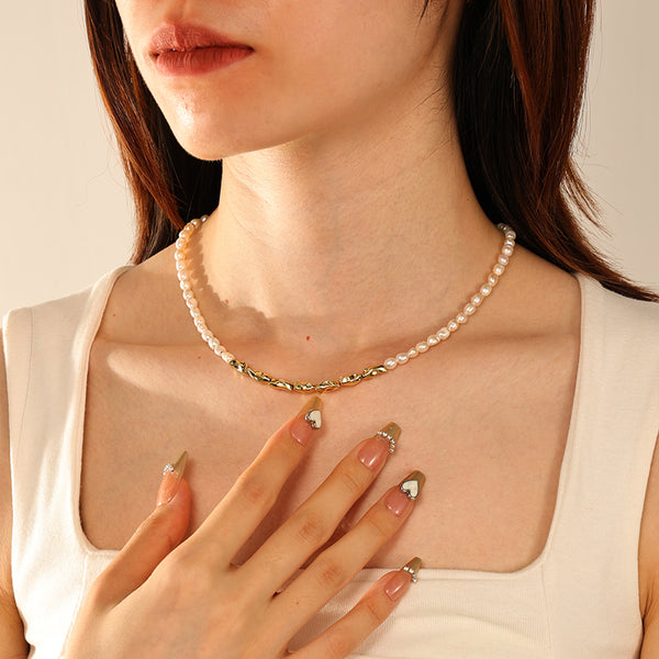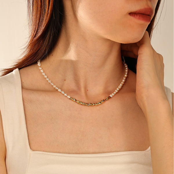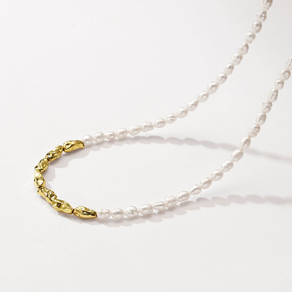 Irregular Gold Bead Freshwater Pearl Necklace |