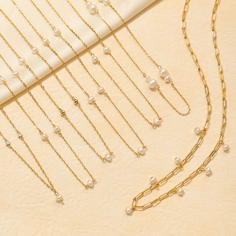 Freshwater Pearl Chrm Bead Chain Necklaces |