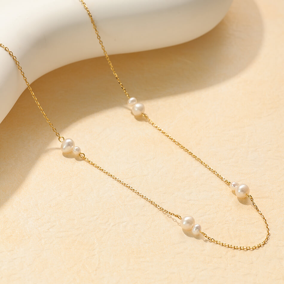 PN0246 925 Sterling Silver Double Freshwster Pearls Charm Beaded Necklace