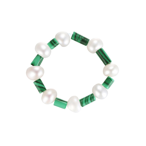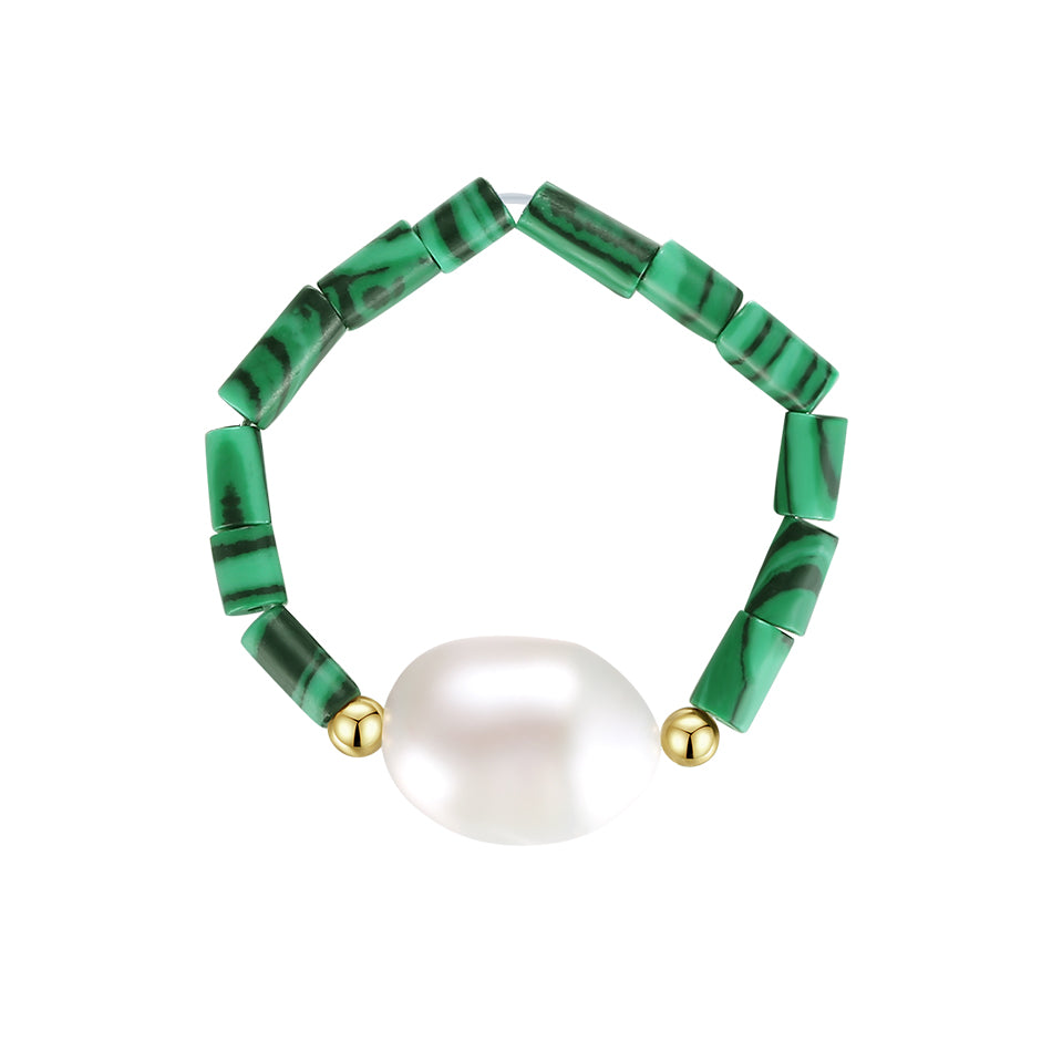 PR0001 PR0003 Green Stone Freshwater Pearl Elasticity Adjustable Ring