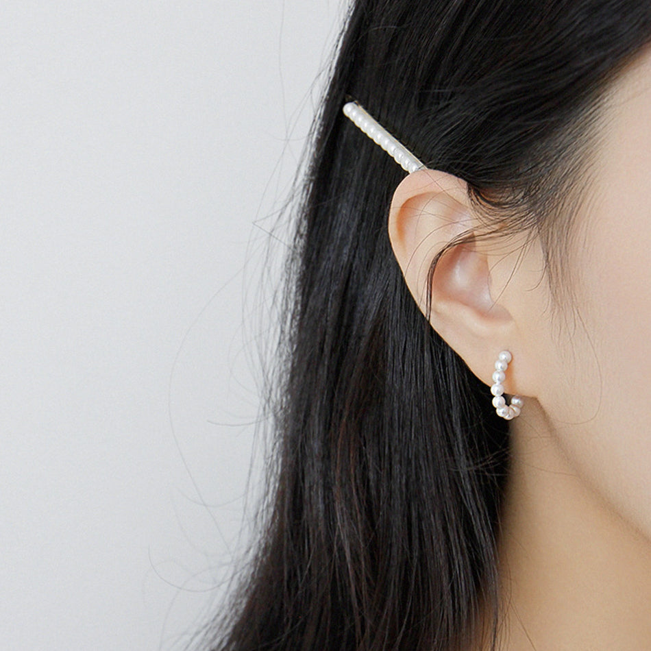 RHE1016 925 Sterling Silver Pearl Bead Hoops