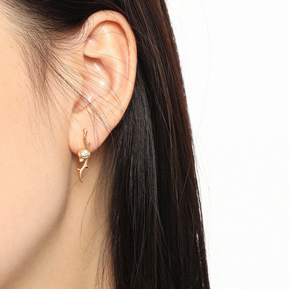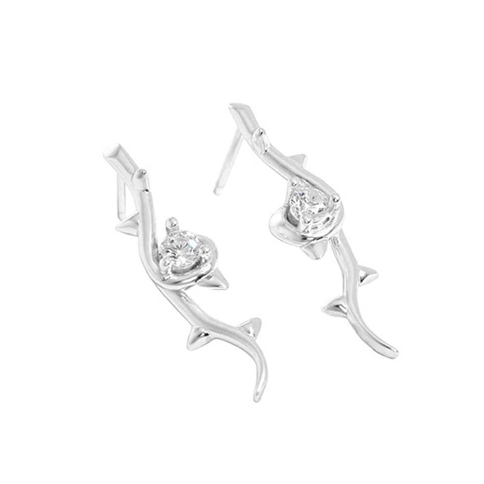 RHE1081 925 Sterling Silver Rose Branch Cubic Zirconia Stud Earrings