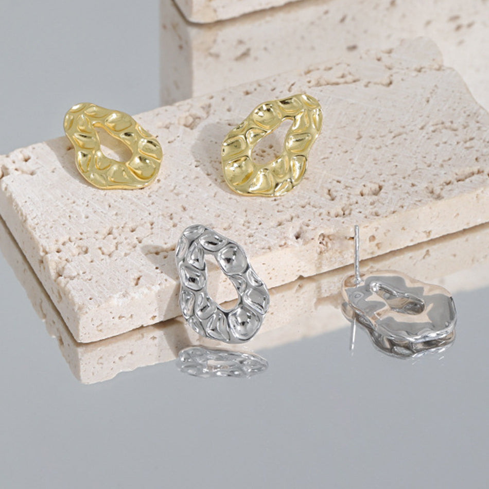RHE1083 925 Sterling Silver Fashionable Hammered Women Earring