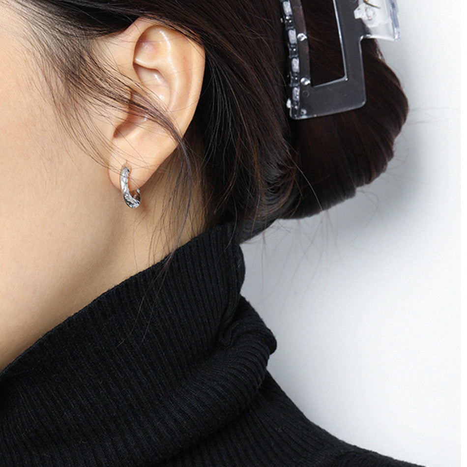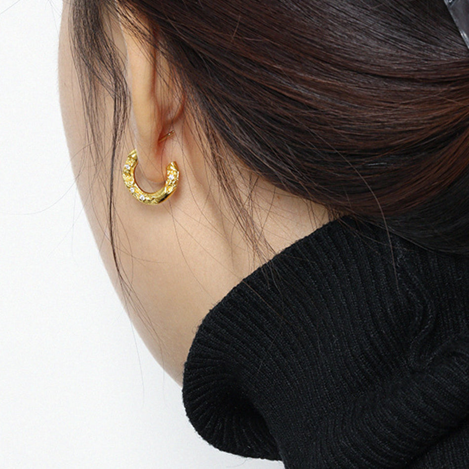 RHE1105 925 Sterling Silver Hammered Hoop Earring With Cubic Zirconia
