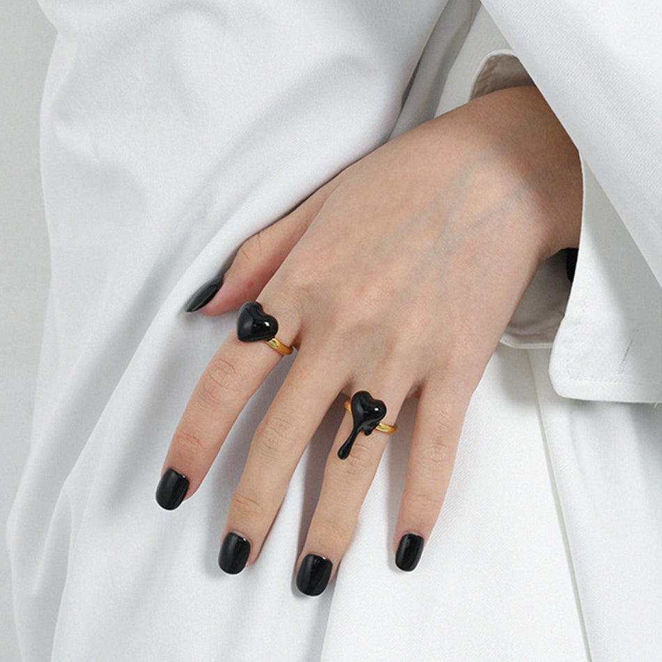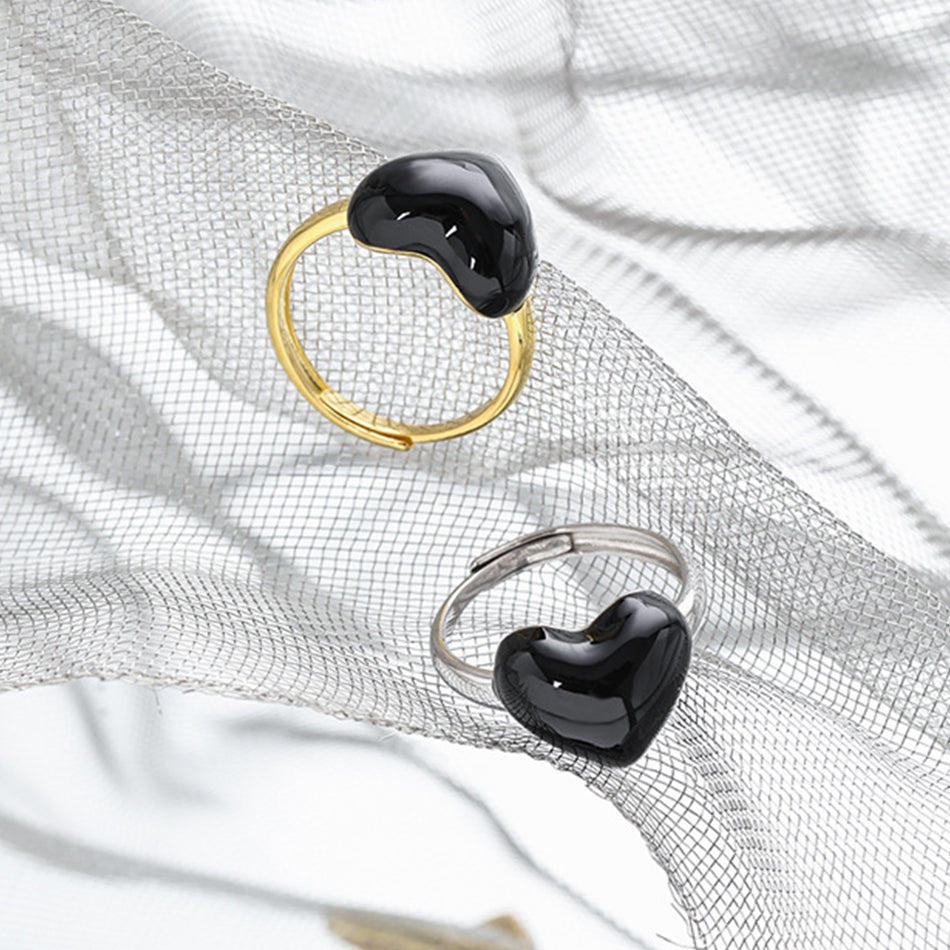 RHJ1080 925 Sterling Sterling Black Enamel Heart Adjustable Ring