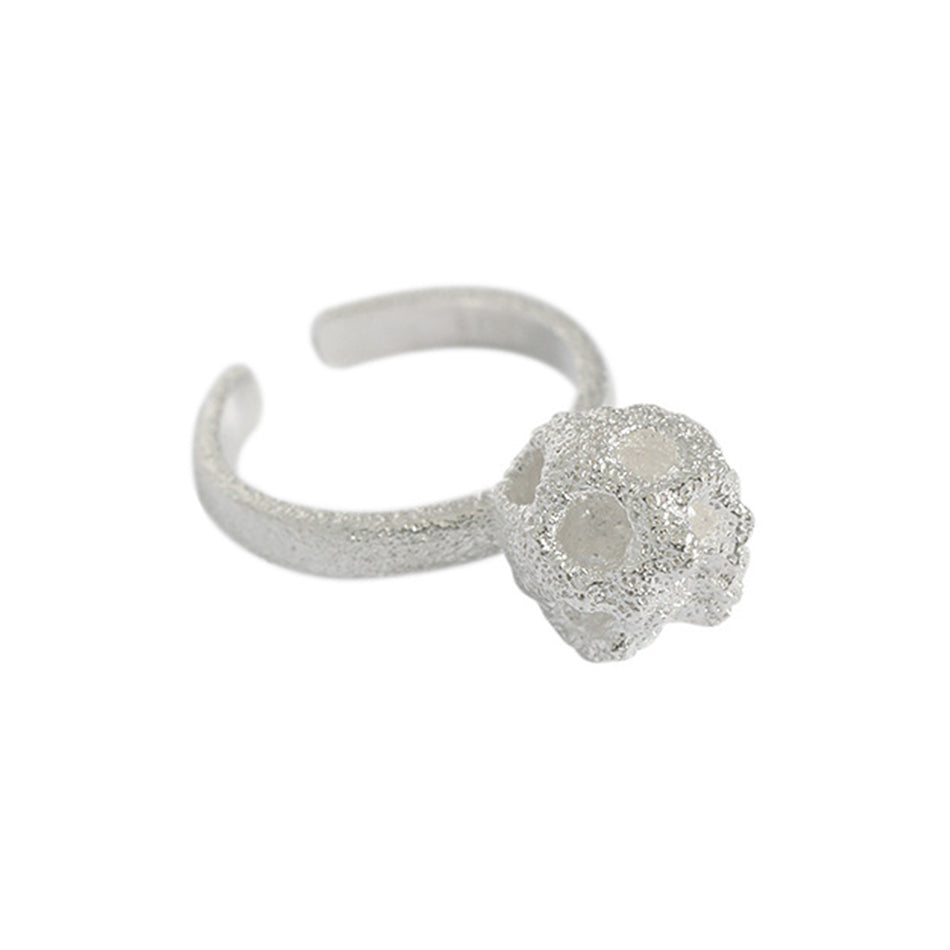 RHJ1119 925 Sterling Silver Textured Hollow Ball Women Open Ring