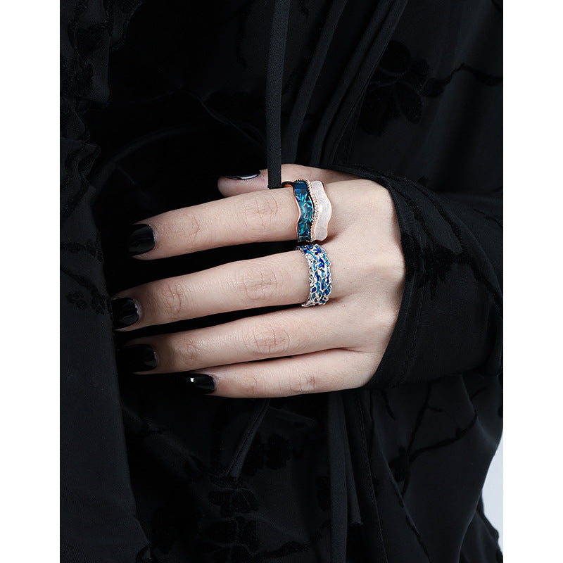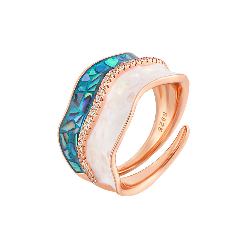 RHJ1193 925 Sterling Silver Cubic Zirconia Two-tone Enamel Open Ring
