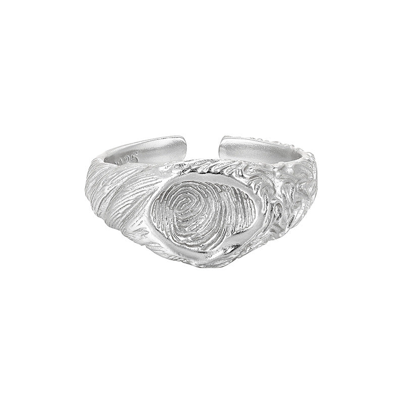 RHJ1200 925 Sterling Silver Retro Concave Fingerprint Design Open Ring