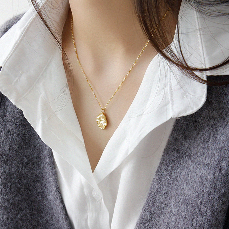 RHX1011 925 Sterling Silver Irregular Rock Pattern Necklace