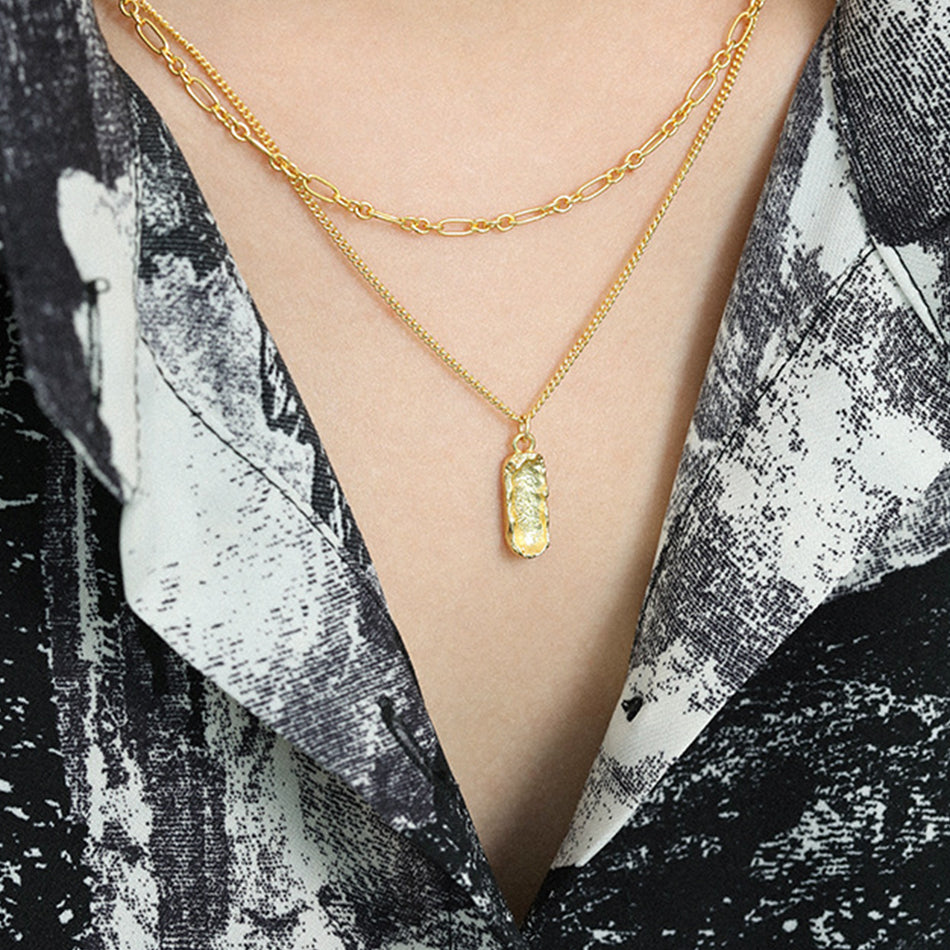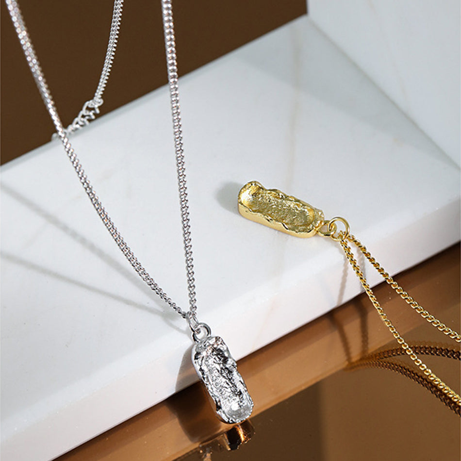 RHX1012 925 Sterling Silver Texture Rectangle Pendant Necklace