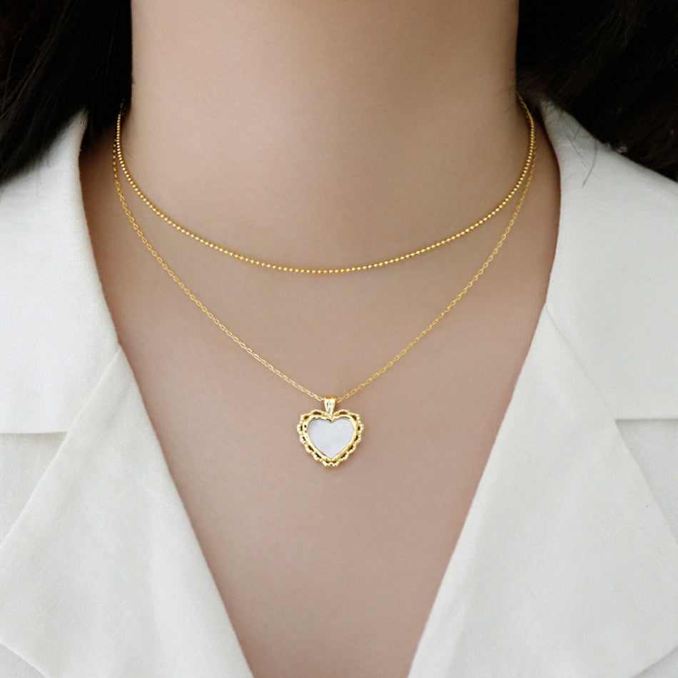 RHX1015 925 Sterling Silver Mother Of Pearl Heart Necklace