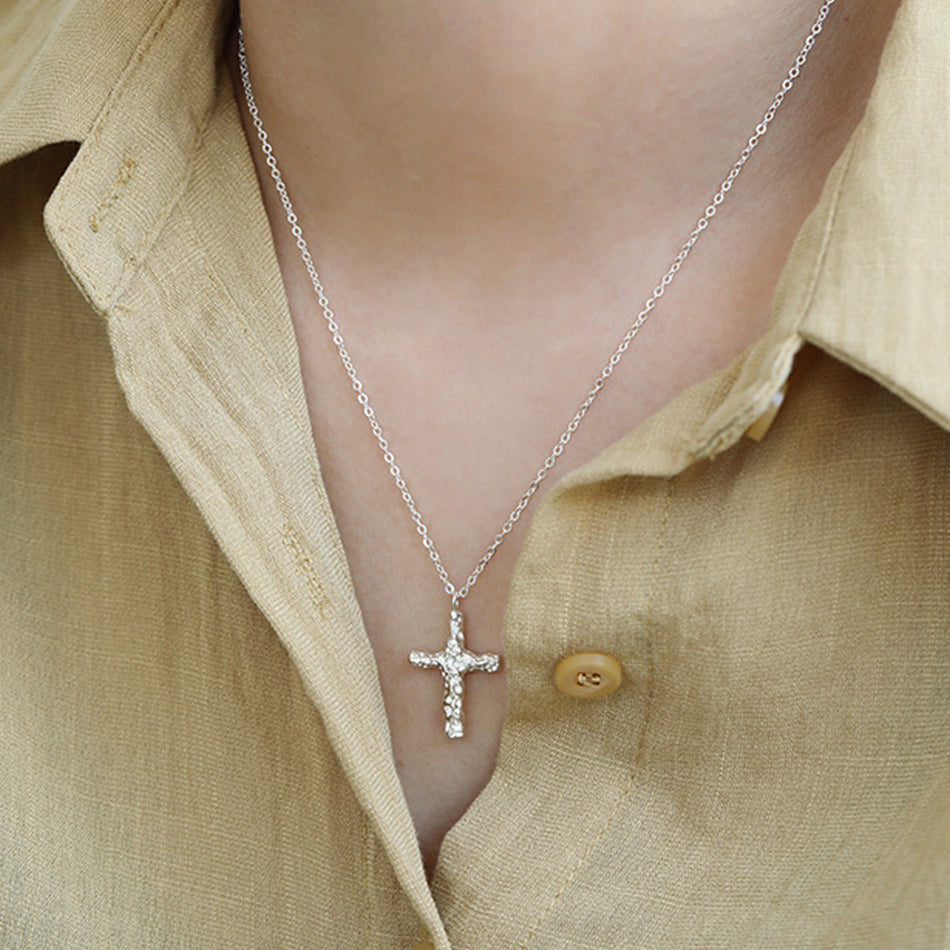 Hammered Cross Pendant Necklace |