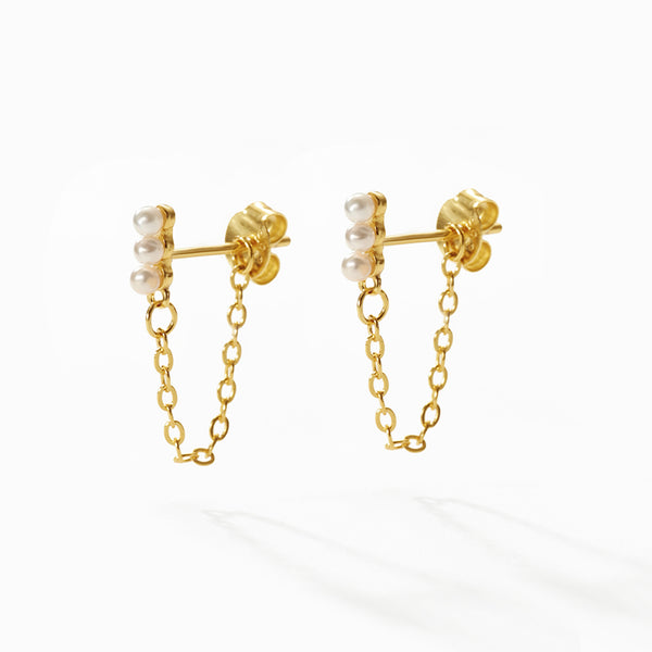 VFE0105 Three Shell Pearl Chain Stud Earring
