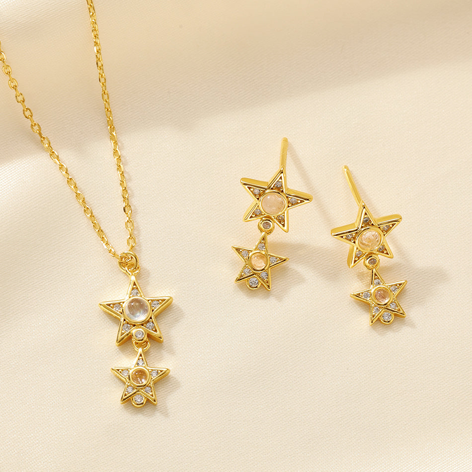 VFE0109 Double Star Moonstone CZ Stud Earring