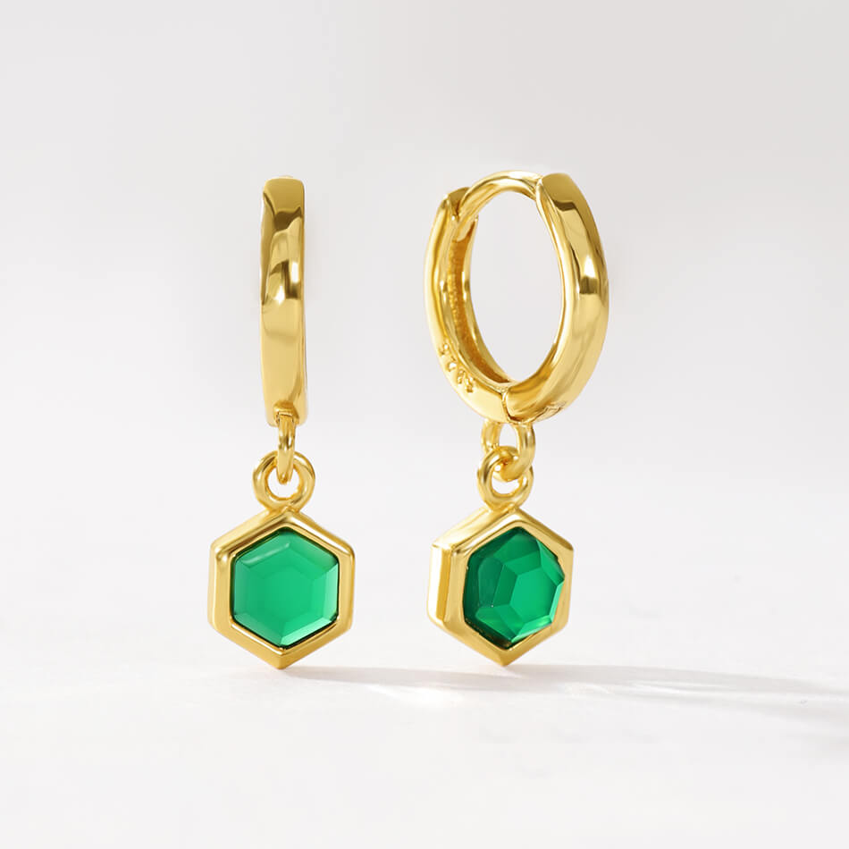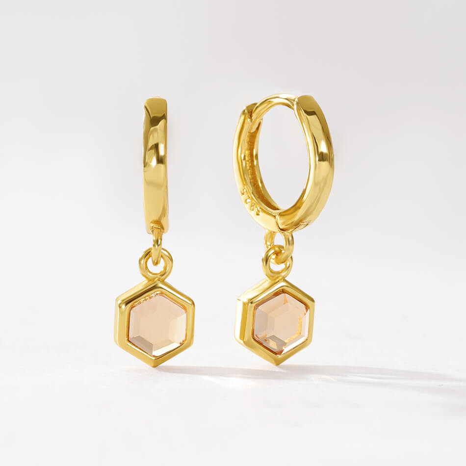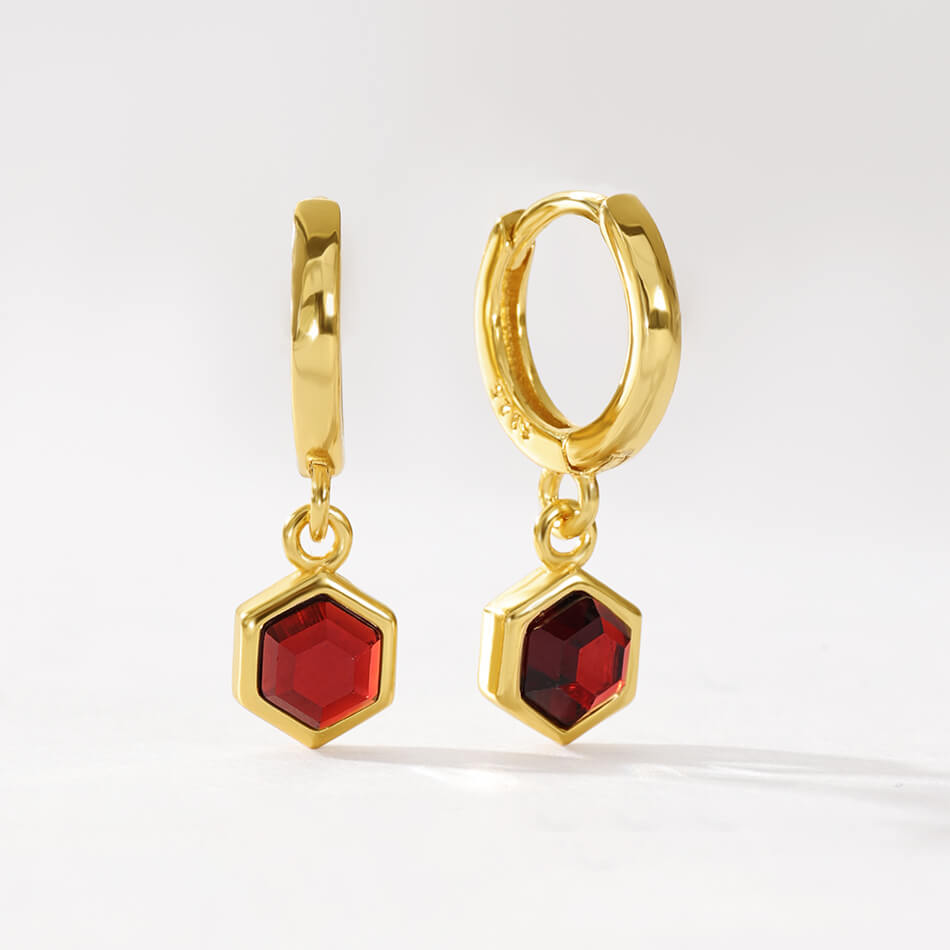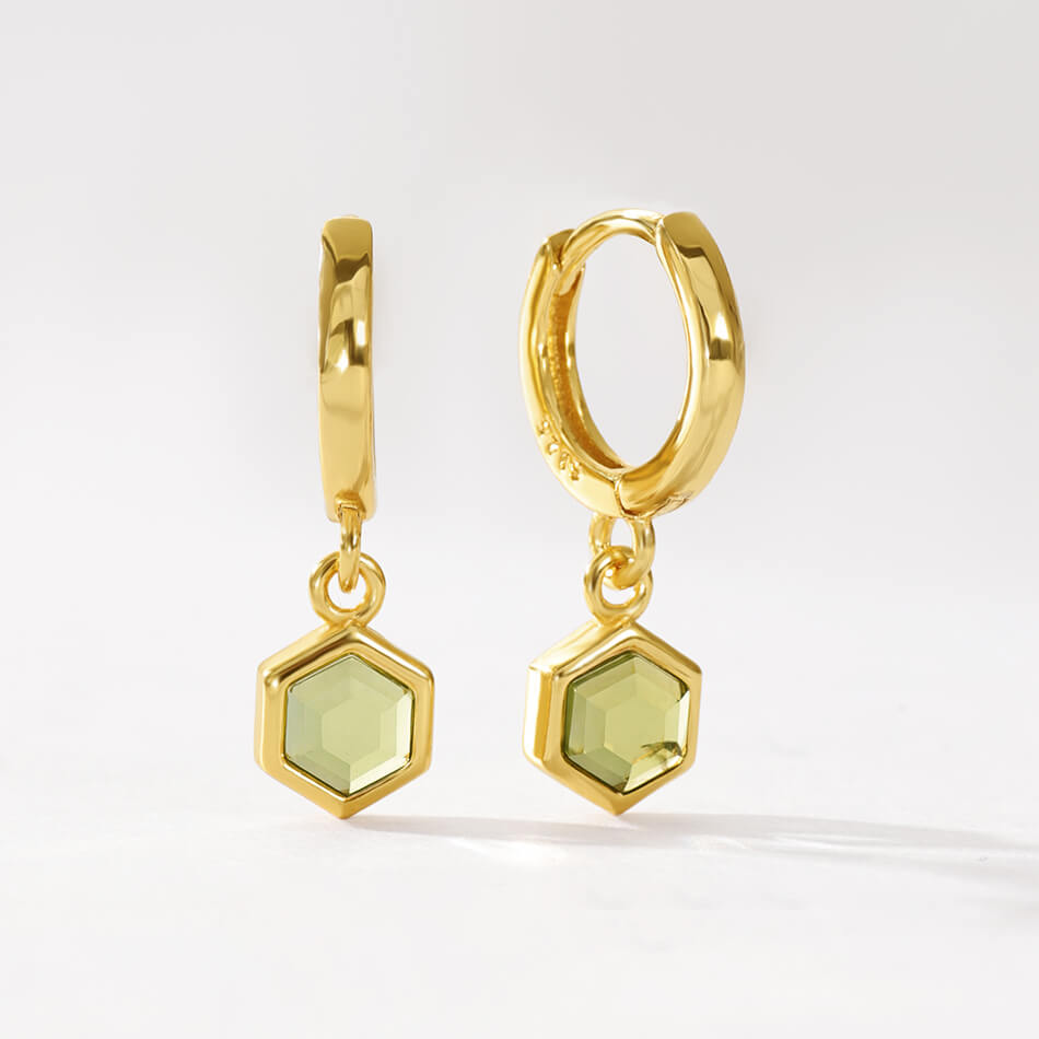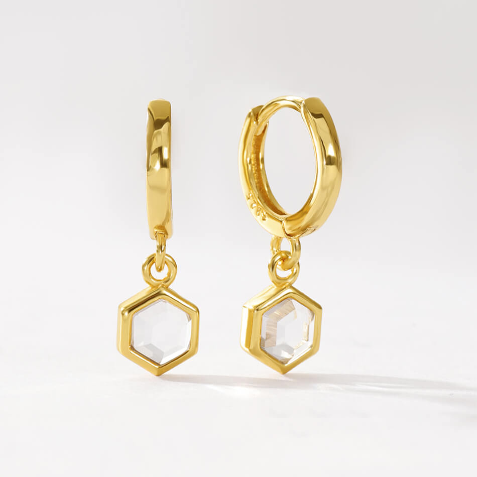 VFE0241 Birthstone Hexagon Drop Huggie Hoop Earring