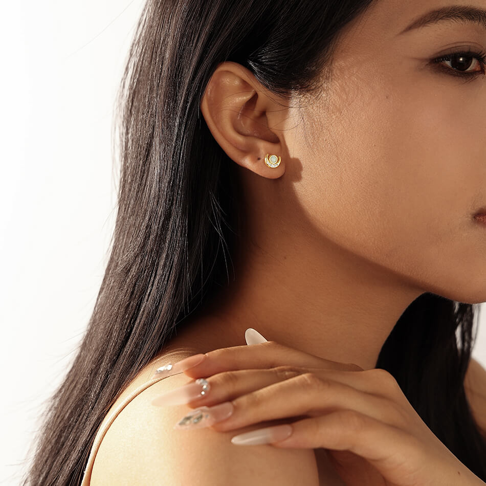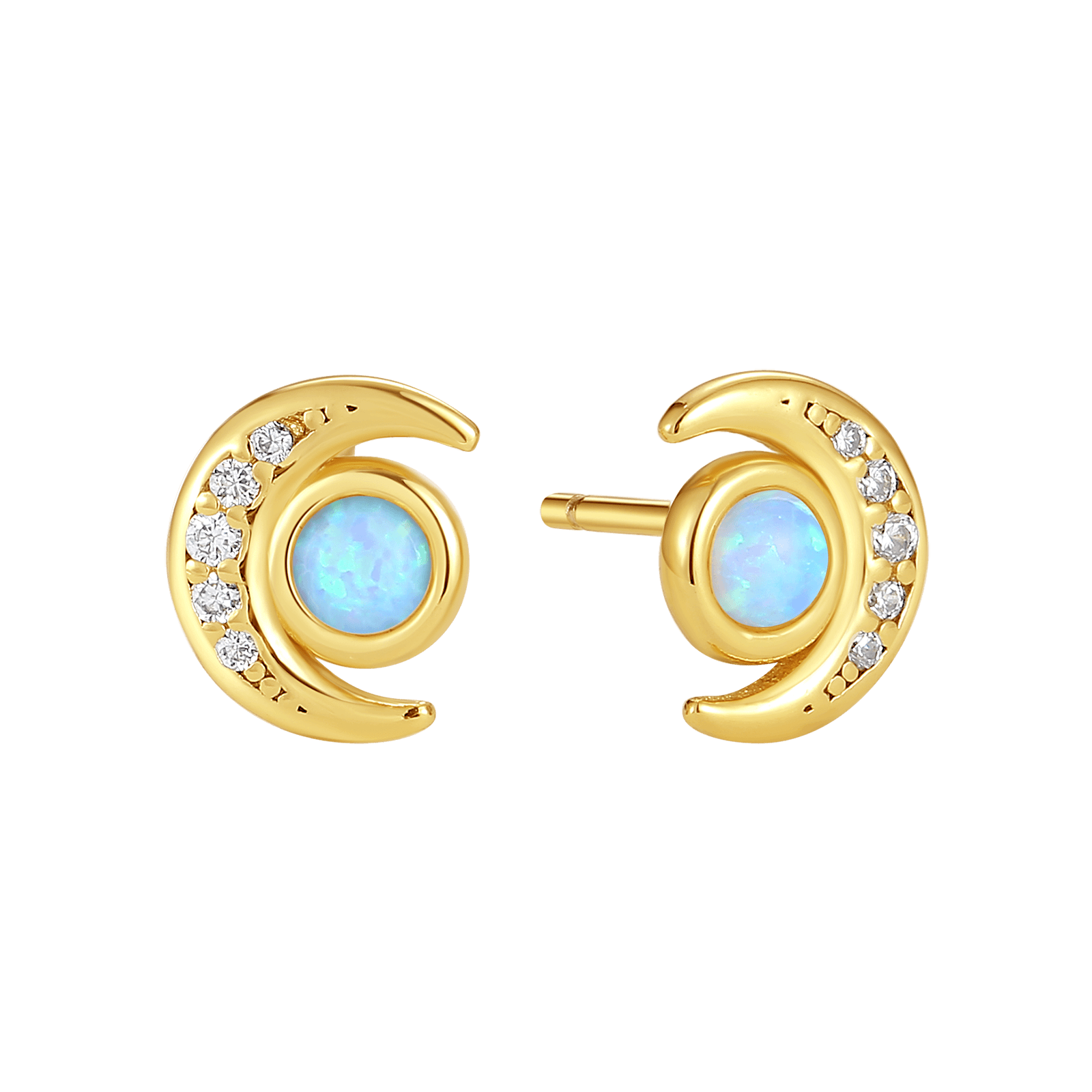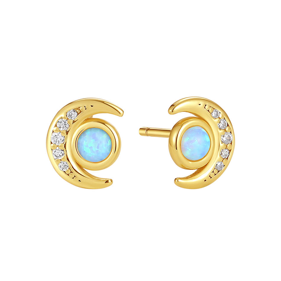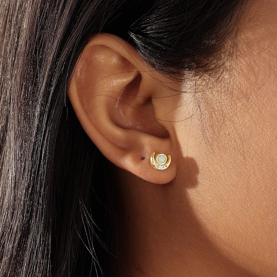Bezel Set Opal Crescent Moon Mini Stud Earring |