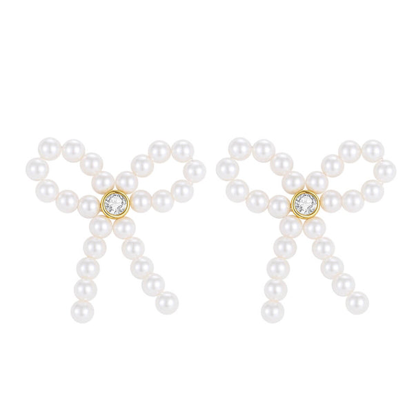 VFE0426 Vitage Shell Pearl Women Bowknot Stud Earring