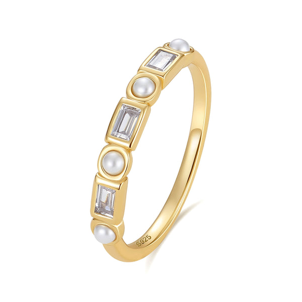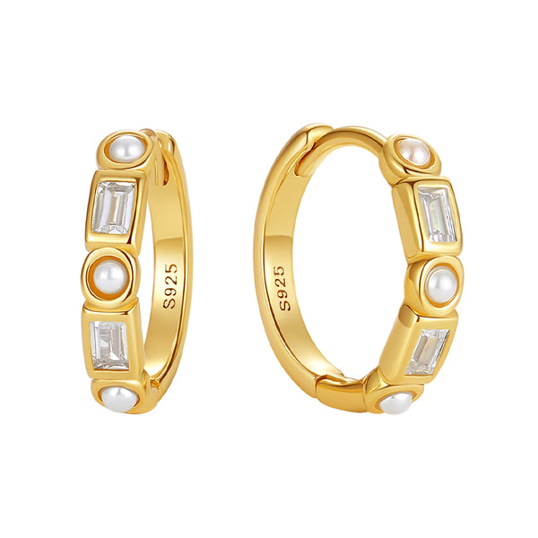 VFE0472 VFX0470 VFJ0471 Alternating Baguette Zircon & Round Pearl Hoop Earring