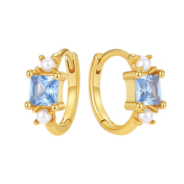 VFE0552 Blue Geometric Square CZ Hoop Earrings