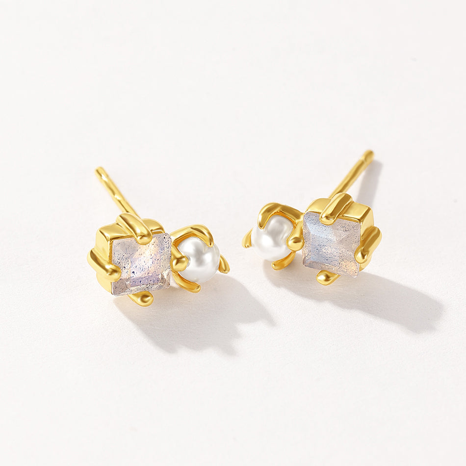 VFE0568 Geometric Square Moonstone Pearl Mini Studs