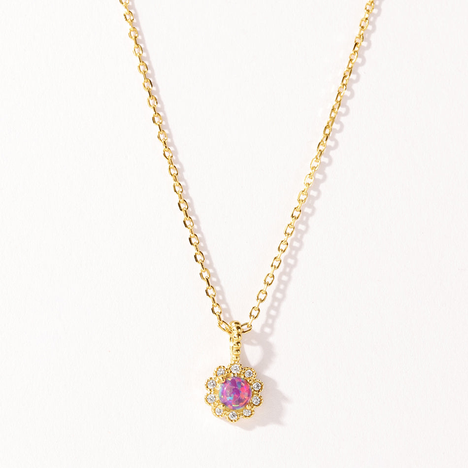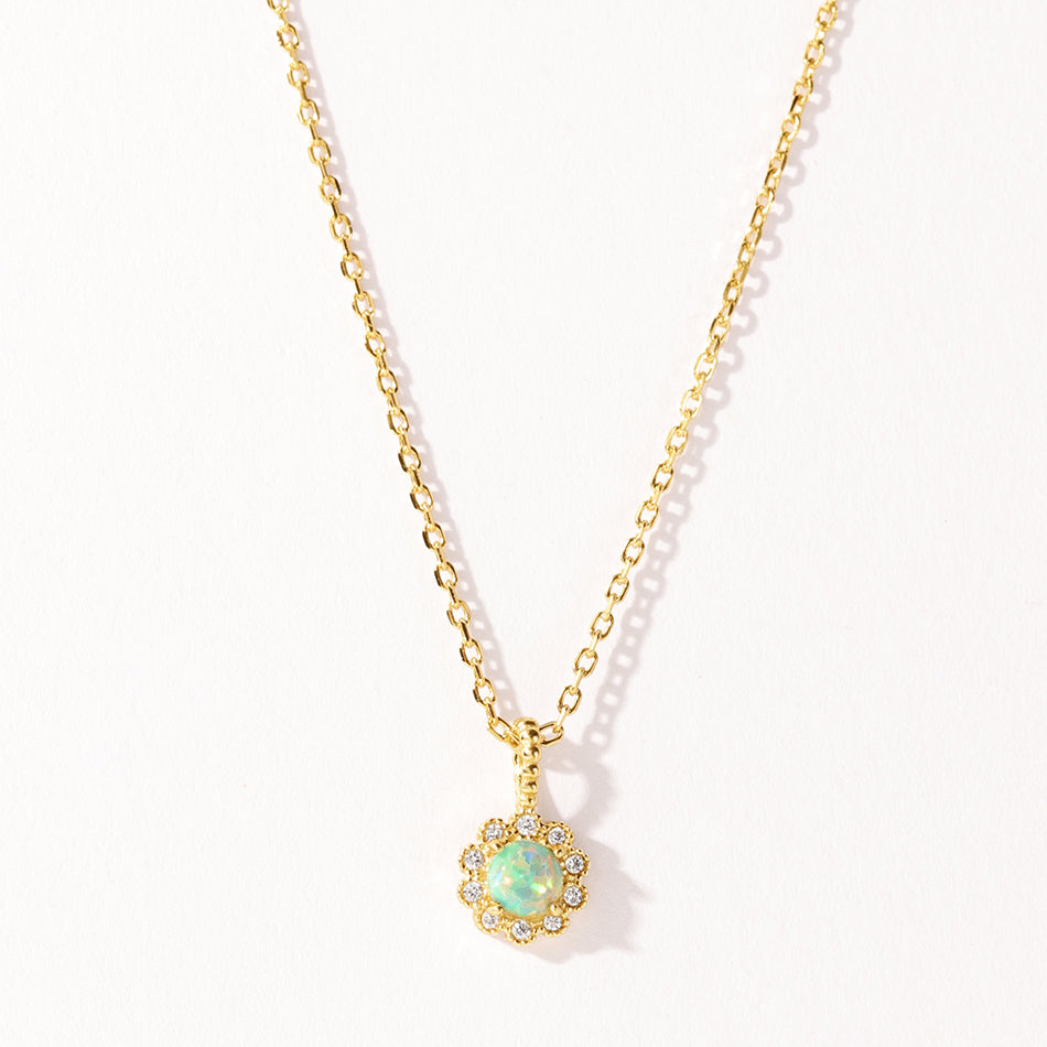 VFX0161 Opal Pave CZ Flower Women Pendant Necklace