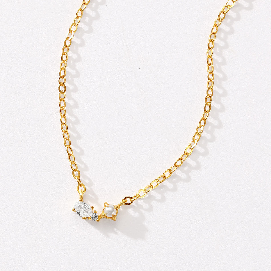 Shell Pearl CZ Pendant Necklace |