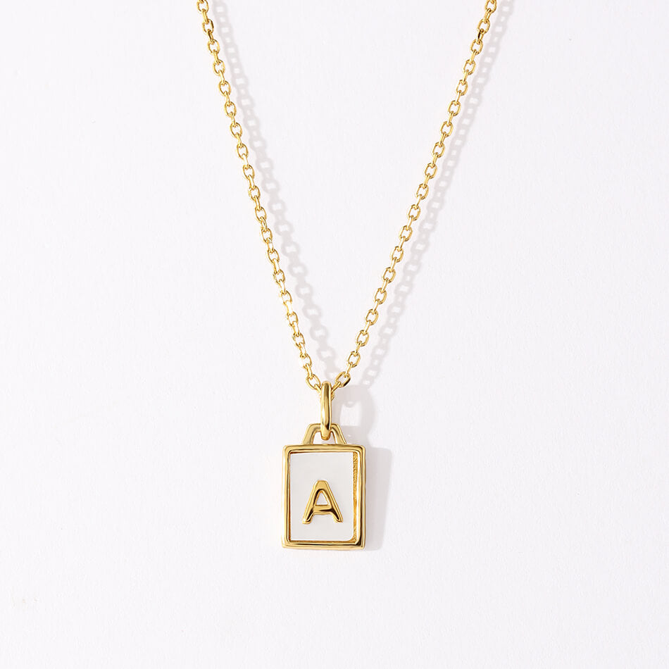 VFX0606 Initial A Rectangle Mother Of Pearl Necklace