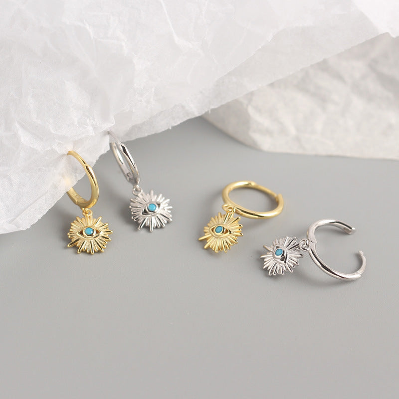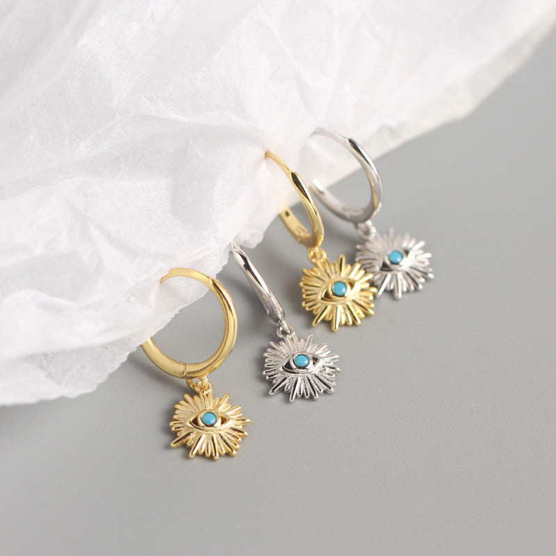 YHE0208 925 Sterling Silver Evil Eye Gemstone Dangle Earring