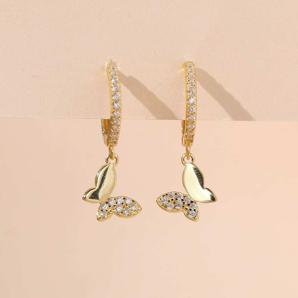 YHE0238 925 Sterling Silver Butterfly Eearring With Cubic Zirconia